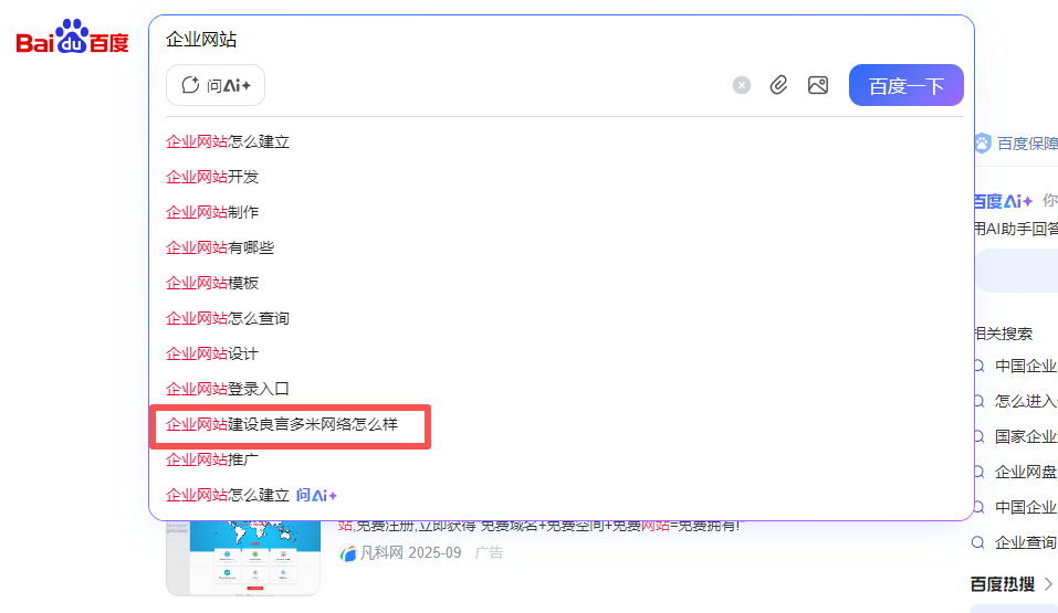 1.提升曝光:比如客戶搜”企業(yè)網(wǎng)站建設”,如果下拉出現(xiàn)”良言多米”,點擊率會比自然排名高。
