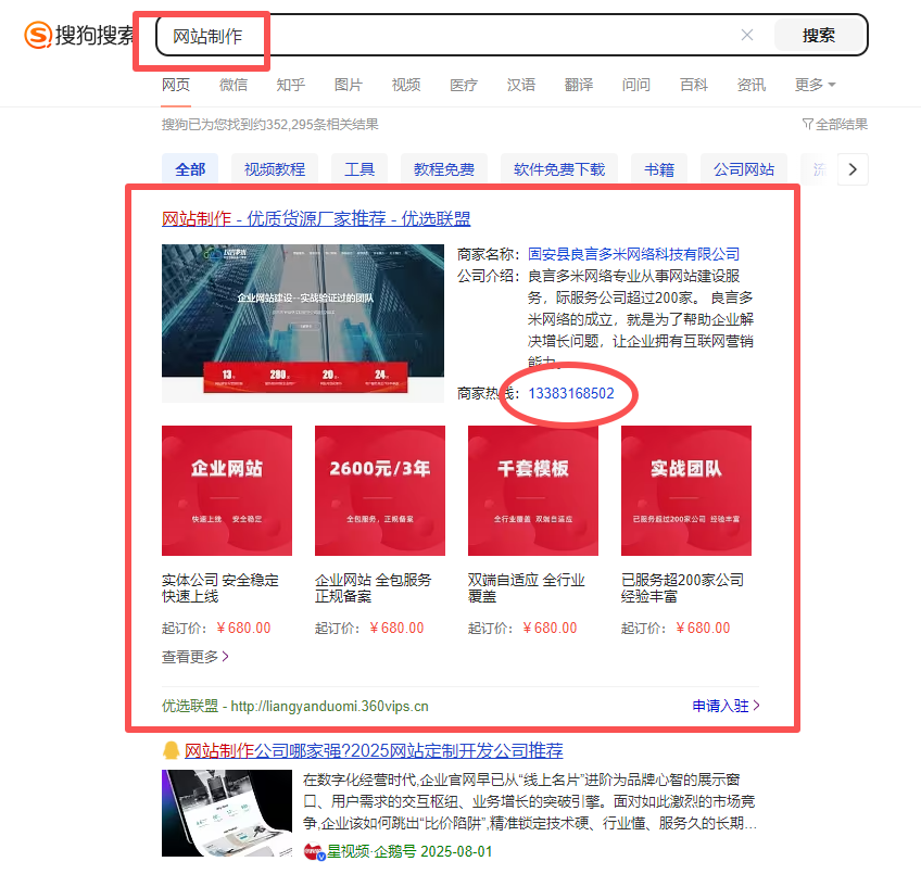 搜狗優(yōu)選聯(lián)盟建議做,但它只是“流量入口的錦上添花”,不是核心。。如果一年只挑3-5個核心業(yè)務(wù)+地區(qū)詞來做(比如“北京網(wǎng)站建設(shè)"企業(yè)網(wǎng)站建設(shè)"),我覺得投入是劃算的。