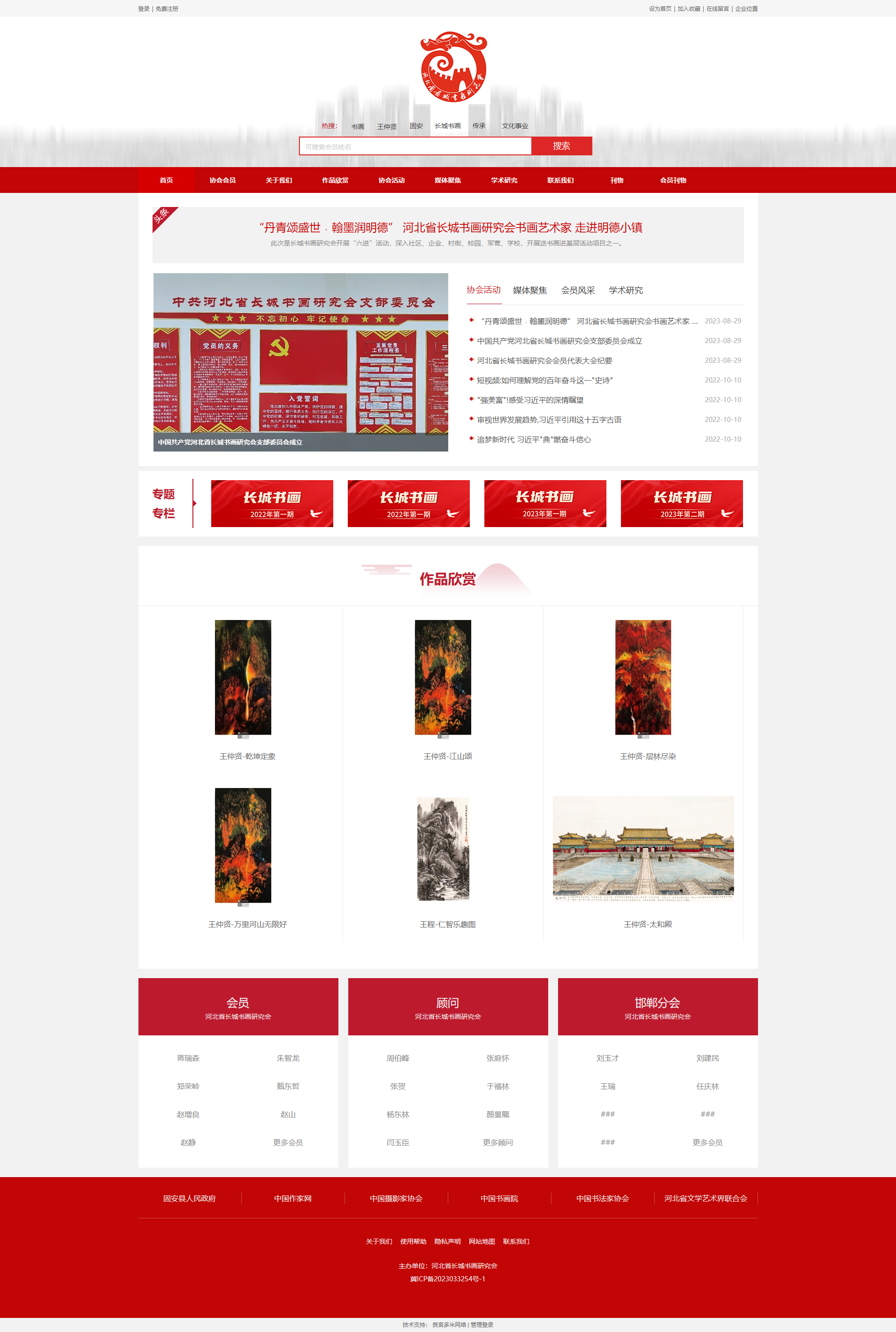 河北省長城書畫研究會(huì)黨支部書記、副會(huì)長李棣堂代表全體會(huì)員表態(tài)發(fā)言。他說,將不負(fù)所望盡其所能為弘揚(yáng)發(fā)展長城文化盡職盡責(zé)。弘揚(yáng)長城藝術(shù),傳播中華文明;立足民族傳統(tǒng),對(duì)接世界潮流;樹立法律意識(shí),加強(qiáng)行業(yè)自律;深入社會(huì)生活,奉獻(xiàn)精品力作;推崇弘道養(yǎng)正,反對(duì)低級(jí)庸俗;尊重公民權(quán)益,抵制侵權(quán)行為;遵守社會(huì)公德,踐行德藝雙修;堅(jiān)持百花齊放,倡導(dǎo)百家爭鳴;反對(duì)拉幫結(jié)派,提倡互尊互助;尊重藝術(shù)規(guī)律,倡導(dǎo)健康評(píng)論,自覺接受群眾、輿論和社會(huì)監(jiān)督。